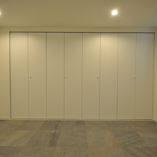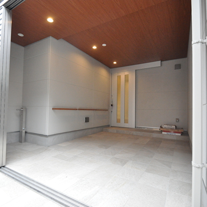 通りに面してインナーガレージを設けています。内部には水栓もあり、使い勝手抜群。 |