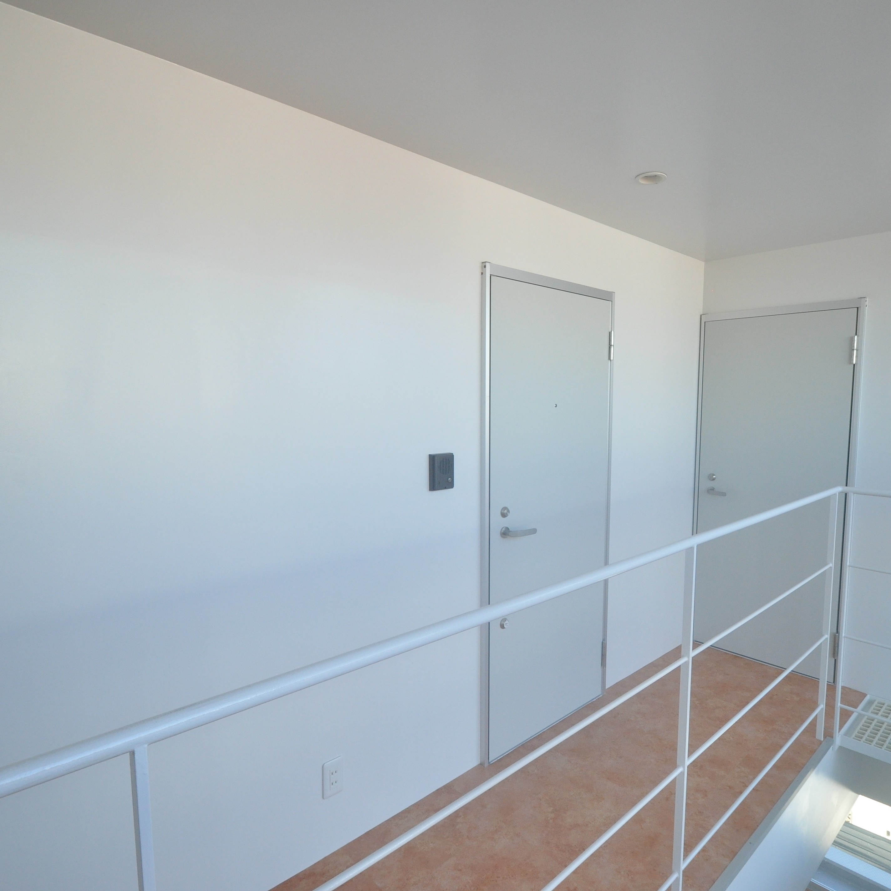 Works施工例・木造共同住宅・3階建 木造3階建の共同住宅。通りに面した大きな窓のおかげで内部は明るい空間になっています。 玄関 玄関収納 共同住宅居室 室内は明るい色調でまとめました。 共同住宅居室 クローゼットも計画。 浴室 洗面脱衣室 トイレ 階段 メインエントランスからつながる階段。明るい空間になるよう、通り側だけでなくサイドにも大きな窓を設置しました。 共用部廊下 建物のアクセントになっている大きな窓。 共用部廊下 十分な採光で廊下も明るい空間になっています。
