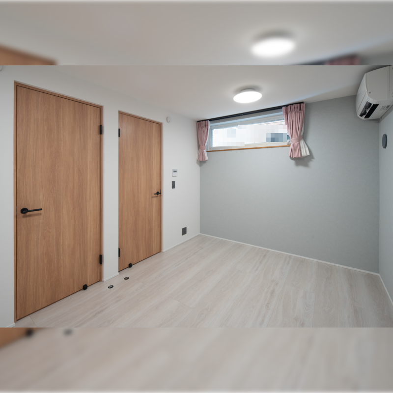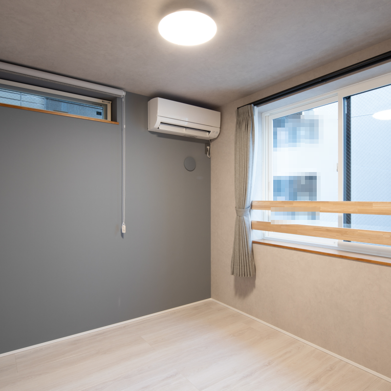 プライバシーと採光の両方に配慮しました。 明るい子供部屋は、ベッドとデスクを設置するのに十分なスペースを確保しました。 成長に応じて二部屋に仕切り、それぞれ独立した部屋として使えるように計画してあります。 |