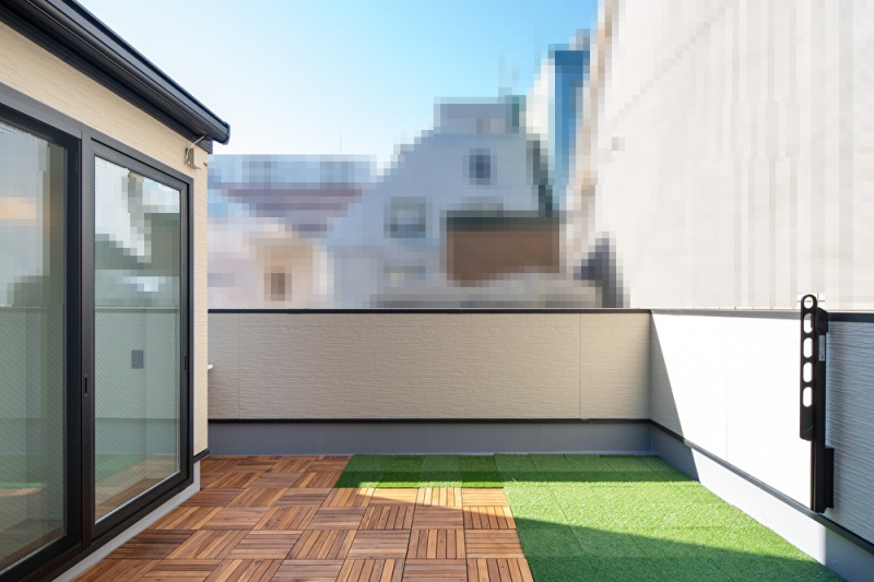開放感溢れる屋上。 混合水栓を取り付けた洗面台も設置しました。 お子様達の遊び場としても、ガーデンパーティ会場としても、最適です。 |